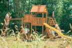 Подходит как для самых маленьких, так и для подростков. Здесь есть качели и мостик, скалодром, башня и корма корабля, горка и турник с большим рукоходом!