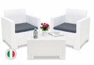Премиальная итальянская мебель для сада и уличных кафе Rattan Premium 4 от итальянского производителя B:Rattan, включает большой 2-х местный диван, 2 кресла и 1 кофейный столик. Пластиковый комплект порадует любителей плетеной мебели своей фактурой в стиле ротанг и прочностью: максимальная нагрузка на диван и кресло — до 200 кг, на столик — до 100 кг.